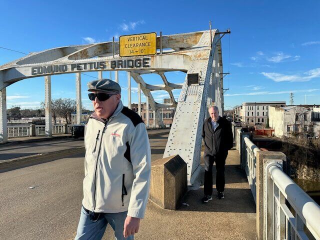 In Selma, the group walked over the Edmund Pettus Bridge, where Civil Rights marchers were beaten by law enforcement officers on Bloody Sunday, March 7, 1965. Afterward they rode by bus to Montgomery, following the route that peaceful protesters marched two weeks after Bloody Sunday under the protection of National Guard troops sent by President Lyndon Johnson.