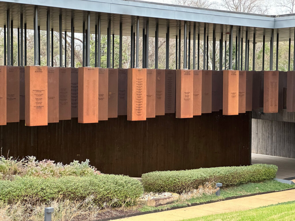In Montgomery, pilgrims visited several museums, including the Equal Justice Initiative’s Legacy Museum, which traces the history of enslavement, Jim Crow, and mass incarceration, and the National Memorial for Peace and Justice, which remembers more than 4,400 Black people who were killed in racial terror lynchings in the United States between 1877 and 1950. Their names are engraved on more than 800 steel markers, one for each county in which lynchings took place.